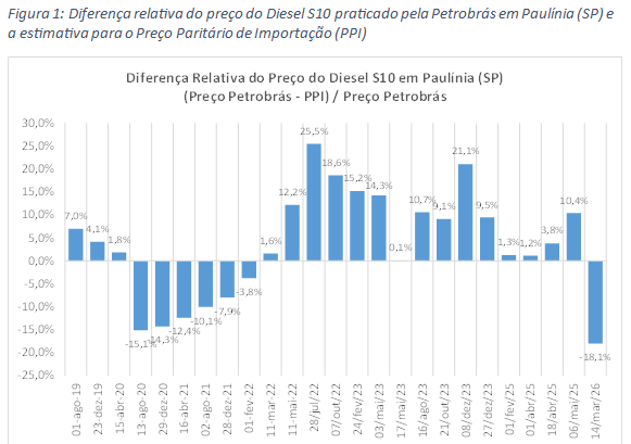 No recente e décimo reajuste, desde o declarado fim do PPI, pela primeira vez o reajuste do preço do diesel na refinaria da Petrobrás foi ajustado para preço mais baixo que a estimativa do PPI. Em 14 de março de 2026, o preço do Diesel S10 em Paulínia (SP) foi ajustado para preço mais baixo que a estimativa do PPI em -18,1%.
