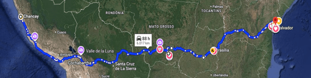No Brasil, a ferrovia seguiria pelo Centro-Oeste (Mato Grosso e Goiás) e Nordeste, até chegar à Bahia no Porto de Aratu/BA com a possibilidade de se integrar a outros investimentos ferroviários em construção como a Ferrovia de Integração Oeste-Leste (FIOL – EF-334) que tem a extensão de 1.527 quilômetros, entre Ilhéus/BA e Figueirópolis/TO.