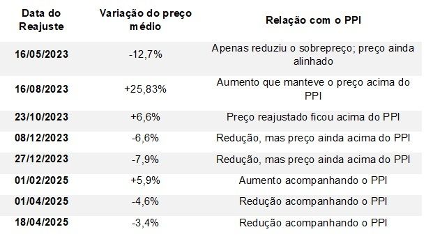 Tabela 2: Reajustes do diesel e a persistência do PPI (maio/2023 a maio/2025)